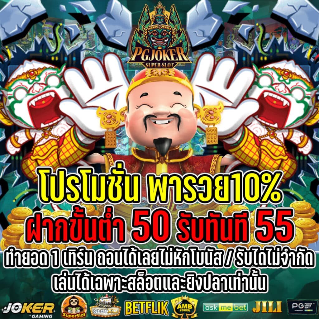 PGJoker สล็อตยักษ์ โปรโมชั่นพารวย10% ประเดิมเงินรางวัลใหม่ล่าสุดก่อนใคร กับโปรโมชั่นสุดพิเศษที่ไม่ว่าเป็นนักพนันท่านไหนก็ต้องชื่นชอบอย่างแน่นอน เครดิตฟรี2024 ความพิเศษแกะกล่องจากทางเว็บไซต์ที่พร้อมบริการให้กับสมาชิกทุกท่าน เพื่อรับกำไรได้อย่างคุ้มค่ามากที่สุดและพร้อมที่จะพาคุณสัมผัสกับความสนุกจากเกมพนันออนไลน์มากมาย ซึ่งเครดิตฟรีกลางเป็นรูปแบบของโปรโมชั่นที่นักพนันต่างต้องการเป็นอย่างมาก เนื่องจากเงินฟรีมีใครบ้างที่จะไม่ชอบ แถมยังเป็นเงินรางวัลที่สามารถถอนยอดเงินออกได้ทันที แต่จะให้ดีเอามาลงทุนเดิมพันต่อไม่แน่จากเงินหลักร้อยอาจเปลี่ยนเป็นหลักพันหรือหลักหมื่นได้ภายในเวลาไม่นานอย่างแน่นอน